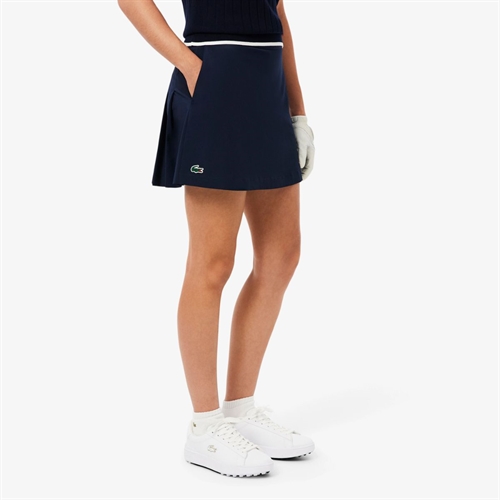 Lacoste Nederdele med indershorts i Navy er en teknisk og elegant nederdel designet til golf og en aktiv fritid. Den kombinerer lette materialer, bevægelsesfrihed og et stilrent udtryk, så du både kan præstere og se godt ud på banen.